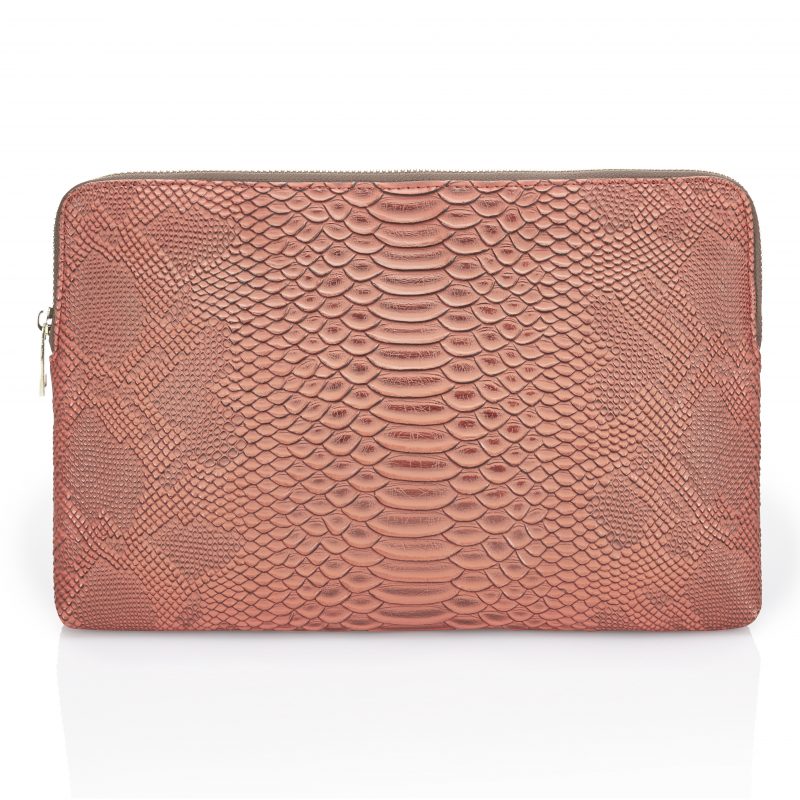 Unsere Tropical Twist Kosmetiktasche ist ein flaches Designerstück, das Ihre Beautyartikel sicher aufbewahrt und als Clutch jedes Outfit stilsicher veredelt. Aus Kunstleder in Reptiloptik mit schwarzem Innenfutter.